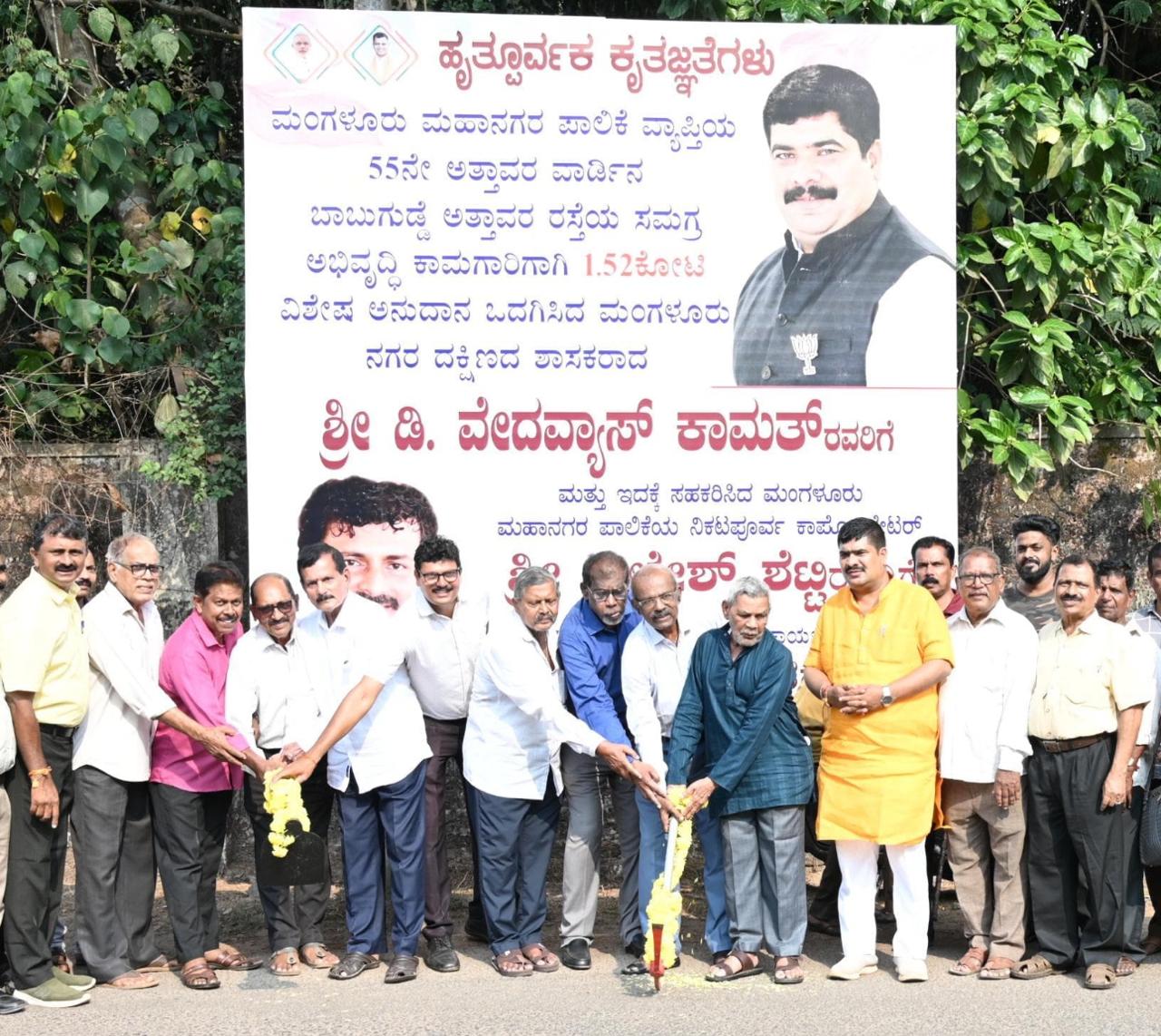ಮಂಗಳೂರು ಮಹಾನಗರ ಪಾಲಿಕೆ ವ್ಯಾಪ್ತಿಯ 55ನೇ ಅತ್ತಾವರ ವಾರ್ಡಿನ ಬಾಬುಗುಡ್ಡೆಯಿಂದ ಮಾರ್ನಮಿಕಟ್ಟೆ ಮುಖ್ಯ ರಸ್ತೆಯವರೆಗೆ ರೂ.1.52 ಕೋಟಿ ವೆಚ್ಚದಲ್ಲಿ ಸಮಗ್ರ ಅಭಿವೃದ್ಧಿ ಕಾಮಗಾರಿ ನಡೆಯಲಿದ್ದು ಶಾಸಕ ವೇದವ್ಯಾಸ ಕಾಮತ್ ರವರ ನೇತೃತ್ವದಲ್ಲಿ ಭೂಮಿ ಪೂಜೆಯು ನಡೆಯಿತು. ನಂತರ ಮಾತನಾಡಿದ ಶಾಸಕರು, ಇದು ಅನೇಕ ವರ್ಷಗಳಿಂದ ಬೇಡಿಕೆಯಿದ್ದ ಪ್ರಮುಖ ಕಾಮಗಾರಿಯಾಗಿದ್ದು ಇದೀಗ ಸಾಕಾರಗೊಳ್ಳುತ್ತಿದೆ. ಇಲ್ಲಿ ಕಾಂಕ್ರೀಟೀಕರಣ ಹಾಗೂ ಚರಂಡಿ ನಿರ್ಮಾಣ ಕಾಮಗಾರಿ ನಡೆಯಲಿದ್ದು ಸ್ಥಳೀಯ ನಿಕಟ ಪೂರ್ವ ಪಾಲಿಕೆ ಸದಸ್ಯರಾದ ಶೈಲೇಶ್ ಶೆಟ್ಟಿಯವರು ವಿಶೇಷ ಶ್ರಮ ವಹಿಸಿದ್ದಾರೆ. ಈ ಭಾಗವು ಹಲವು ಧಾರ್ಮಿಕ ಕೇಂದ್ರಗಳು, ಕುದ್ಮುಲ್ ರಂಗರಾವ್ ರವರ ಸಮಾಧಿ ಹಾಗೂ ಟ್ರಸ್ಟ್, ಮೆಸ್ಕಾಂ ಕಚೇರಿ ಸಹಿತ ಜನನಿಬಿಡ ಪ್ರದೇಶವಾಗಿದ್ದು, ಮುಖ್ಯ ರಸ್ತೆಯಾಗಿರುವ ಕಾರಣ ಕಾಮಗಾರಿ ಸಂದರ್ಭದಲ್ಲಿ ಪೊಲೀಸ್ ಇಲಾಖೆಯ ಸಹಕಾರವೂ ಬಹಳ ಮುಖ್ಯ ಎಂದರು.