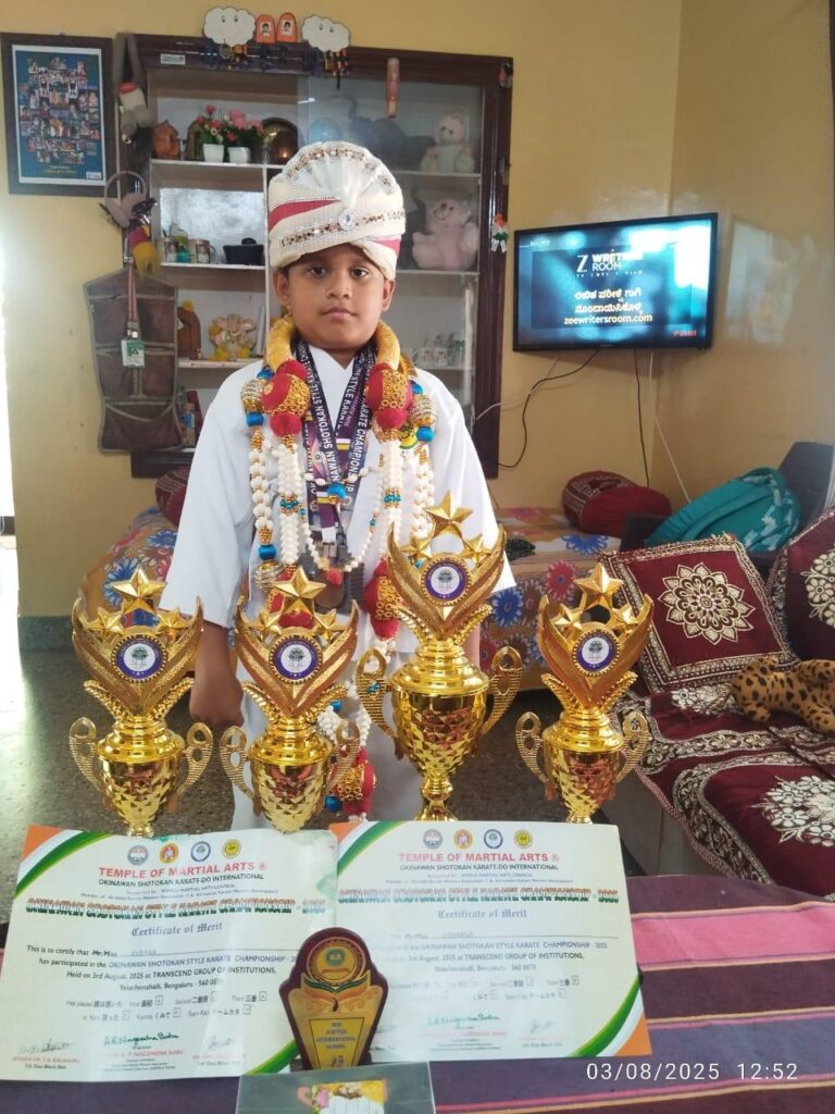 ಬೆಂಗಳೂರು, ಆಗಸ್ಟ್ 3, 2025 — ಒಕಿನಾವನ್ ಶೋಟೋಕಾನ್ ಕರಾಟೆ ಚಾಂಪಿಯನ್ಶಿಪ್ 2025 ಅನ್ನು ಆಗಸ್ಟ್ 3ರಂದು ಯಲಚೆನಹಳ್ಳಿ ಟ್ರಾನ್ಸೆಂಡ್ ಗ್ರೂಪ್ ಆಫ್ ಇನ್ಸ್ಟಿಟ್ಯೂಷನ್ಸ್ನಲ್ಲಿ ಅಂತರ್ ಶಾಲಾ ಸ್ಪರ್ಧೆಯು ಆಯೋಜಿಸಲಾಯಿತು.