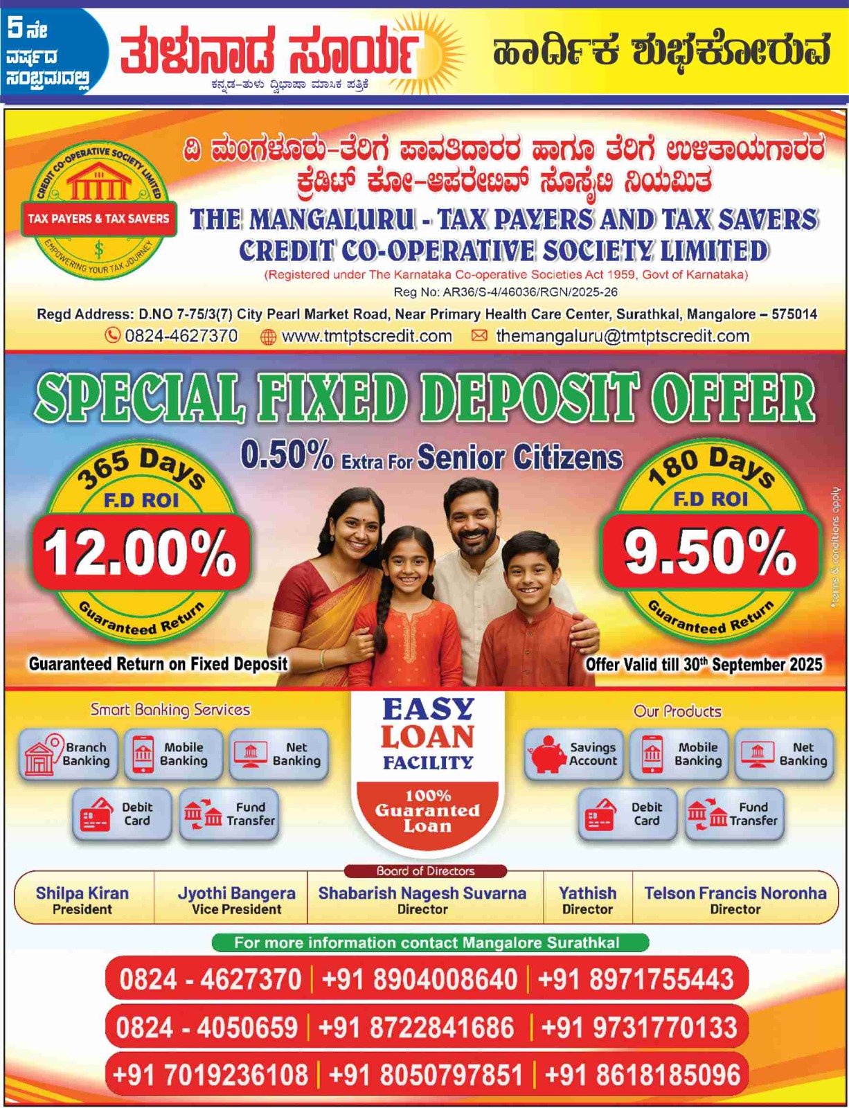 - ✨ ಮಂಗಳೂರಿನ ಎಮ್ಸಿಸಿ ಬ್ಯಾಂಕ್ನಲ್ಲಿ ಸಂಭ್ರಮಭರಿತ ದೀಪಾವಳಿ ಆಚರಣೆ