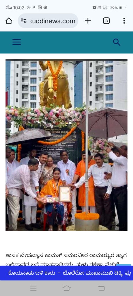 ಸ್ವಾತಂತ್ರ್ಯ ಹೋರಾಟಗಾರರ ಕೆದಂಬಾಡಿ ರಾಮಯ್ಯ ಗೌಡ ಸ್ಮಾರಕ ಸ್ಥಾಪನ ಸಮಿತಿ ಹಾಗೂ ತುಳುನಾಡ ರಕ್ಷಣಾ ವೇದಿಕೆ ಸಹಯೋಗದೊಂದಿಗೆ ದಿನಾಂಕ 15-08-2025 ರಂದು ಬೆಳಗ್ಗೆ 10.30 ಕ್ಕೆ ಮಂಗಳೂರಿನ ಬಾವುಟ ಗುಡ್ಡೆಯಲ್ಲಿರುವ ಸಮರವೀರ ಕೆದಂಬಾಡಿ ರಾಮಯ್ಯ ಗೌಡರ ಪ್ರತಿಮೆ ಮುಂಭಾಗದಲ್ಲಿ ಸ್ವಾತಂತ್ರೋತ್ಸವದ ಧ್ವಜಾರೋಹಣ ಕಾರ್ಯಕ್ರಮ ನಡೆಯಿತು