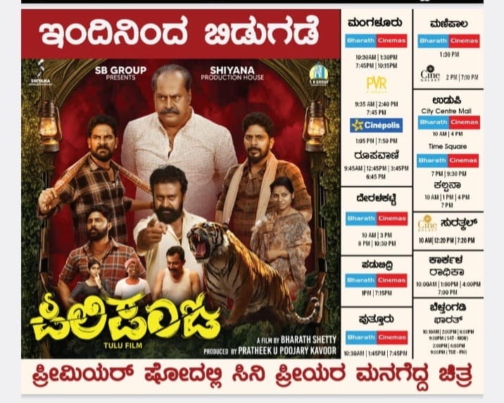ಮಂಗಳೂರು: ಯಸ್ ಬಿ ಗ್ರೂಪ್ಸ್ ಅರ್ಪಣೆ ಹಾಗೂ ಶಿಯಾನ ಪ್ರೊಡಕ್ಷನ್ ಹೌಸ್ ಬ್ಯಾನರ್ ಅಡಿಯಲ್ಲಿ ನಿರ್ಮಾಣಗೊಂಡ, ಪ್ರತೀಕ್ ಯು. ಪೂಜಾರಿ (ಕಾವೂರು) ನಿರ್ಮಾಣದ ಹಾಗೂ ಭರತ್ ಶೆಟ್ಟಿ ಅವರ ಕಥೆ–ಪರಿಕಲ್ಪನೆ–ನಿರ್ದೇಶನದ ಬಹುನಿರೀಕ್ಷಿತ ತುಳು ಸಿನಿಮಾ “ಪಿಲಿಪಂಜ” ಮಂಗಳೂರಿನ ಭಾರತ್ ಮಾಲ್ನ ಬಿಗ್ ಸಿನಿಮಾಸ್ನಲ್ಲಿ ಭವ್ಯವಾಗಿ ಬಿಡುಗಡೆಯಾಯಿತು.