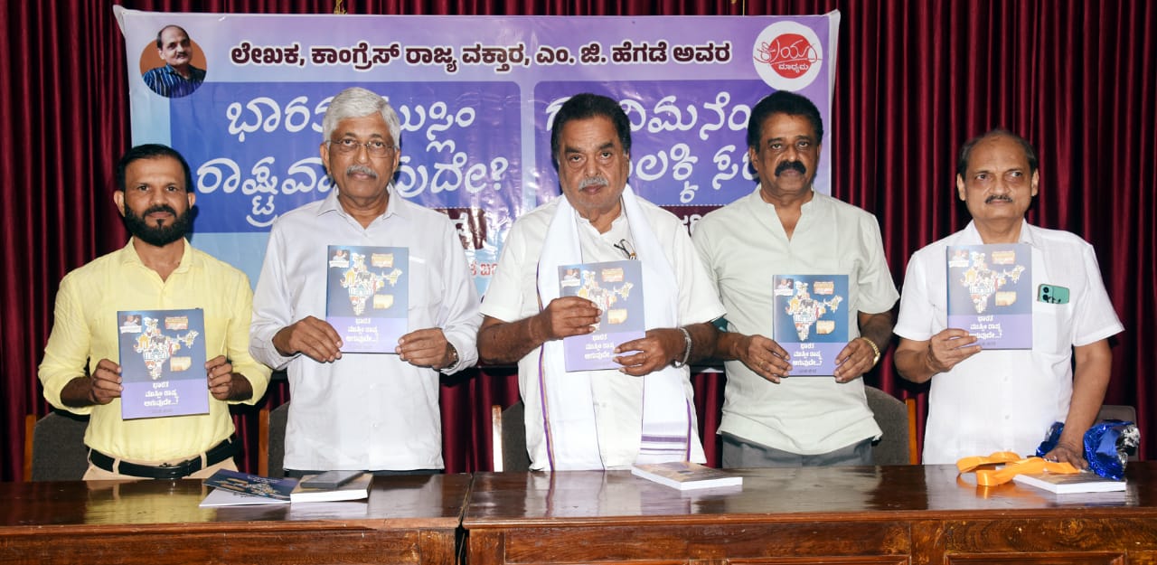 ಮಂಗಳೂರು: ನಗರದ ಸಹೋದಯ ಹಾಲ್ ನಲ್ಲಿ ಖ್ಯಾತ ಸಾಹಿತಿ ಮತ್ತು ಚಿಂತಕ ಎಂ ಜಿ ಹೆಗಡೆ ಅವರ “ಭಾರತ ಮುಸ್ಲಿಂ ರಾಷ್ಟ್ರವಾಗುವುದೇ” ಕೃತಿಯ ಬಿಡುಗಡೆ ಹಾಗೂ “ಗಾಂಧಿಮನೆಯ ಅವಲಕ್ಕಿಸರ” ಪುಸ್ತಕ ಪರಿಚಯ ಕಾರ್ಯಕ್ರಮ ಅತ್ಯಂತ ಯಶಸ್ವಿಯಾಗಿ ನೆರವೇರಿತು. ಸಾಹಿತ್ಯಾಸಕ್ತರು, ಚಿಂತಕರು, ಸಮಾಜಮುಖಿ ಹೋರಾಟಗಾರರು ಹಾಗೂ ಮಾಧ್ಯಮ ಪ್ರತಿನಿಧಿಗಳ ಸಮ್ಮುಖದಲ್ಲಿ ನಡೆದ ಈ ಕಾರ್ಯಕ್ರಮ ಚಿಂತನೆಗೆ ದಾರಿಯಾದ ಒಂದು ಮಹತ್ವದ ವೇದಿಕೆಯಾಗಿತ್ತು.