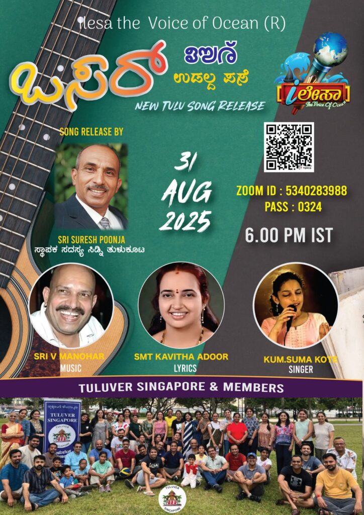 ತುಳು ಸಾಹಿತ್ಯ ಮತ್ತು ಸಂಗೀತ ಲೋಕಕ್ಕೆ ಮತ್ತೊಂದು ಬೆಳ್ಳಿ ಕಂಚಿನಂತ ಹೊಸ ಕೊಡುಗೆ ಆಗಿ, “ಒಸರ್” ಎಂಬ ಹೊಸ ತುಳು ಗೀತೆ ಆಗಸ್ಟ್ 31, 2025, ಐತವಾರ ಸಂಜೆ 6:00 (ಭಾರತೀಯ ಕಾಲಮಾನ)ಕ್ಕೆ ಝೂಮ್ ವೇದಿಕೆಯಲ್ಲಿ ಲೋಕಾರ್ಪಣೆಯಾಗಲಿದೆ.
