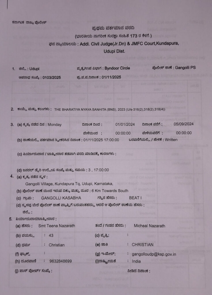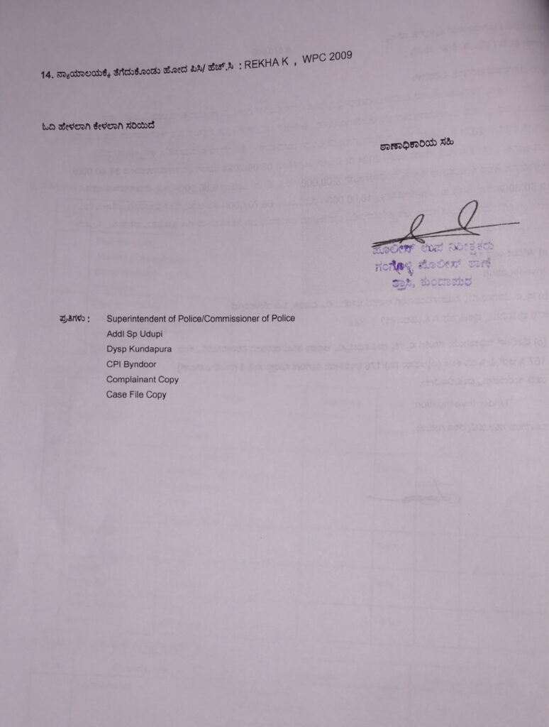 ಪೊಲೀಸ್ ಅಧೀಕ್ಷಕರು ದೂರುಗೆ ತಕ್ಷಣ ಸ್ಪಂದಿಸಿ ಗಂಗೊಳ್ಳಿ ಪೊಲೀಸ್ ಠಾಣೆಯಲ್ಲಿ ಪ್ರಕರಣ ದಾಖಲಿಸಲು ಕ್ರಮ ಕೈಗೊಂಡಿದ್ದಾರೆ. FIR ಆಗಿರುತ್ತದೆ.